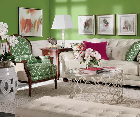 優雅的果綠色所呈現出的是一個原始森林世界,那樣雅致卻清新的顏色組成,那樣和諧明朗的顏色配合,是一種視覺上的精致唯美,是一種心理上的舒適和諧,再搭配墻上的工筆掛畫,更是將一種繪畫所表現出光影魅力完全展現,明暗之間的對比,色彩之間的調配,是一種藝術上的和諧美感,是一種另類的色彩時尚。